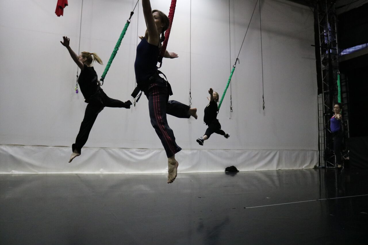 Speaking of air, our next workshop was in bungee-assisted dance, which was crazy bouncing fun but also great for individuals to experience learning to dance in partnership with a bungee. It was incredible seeing individuals enjoying moments of flight as they dived, turned and leaped through the air!