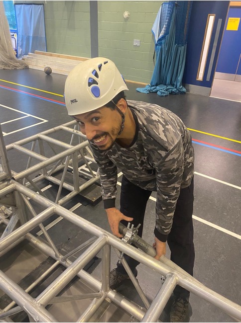 I started in a ground-based performer role in Rigoletto. Later, I continued to get involved and expressing an interest in how things worked. Jamie showed me some of the basics in climbing techniques and rigging and it went from there. I went on to complete my IRATA Level 1 Technician in Rigging & Wire work.